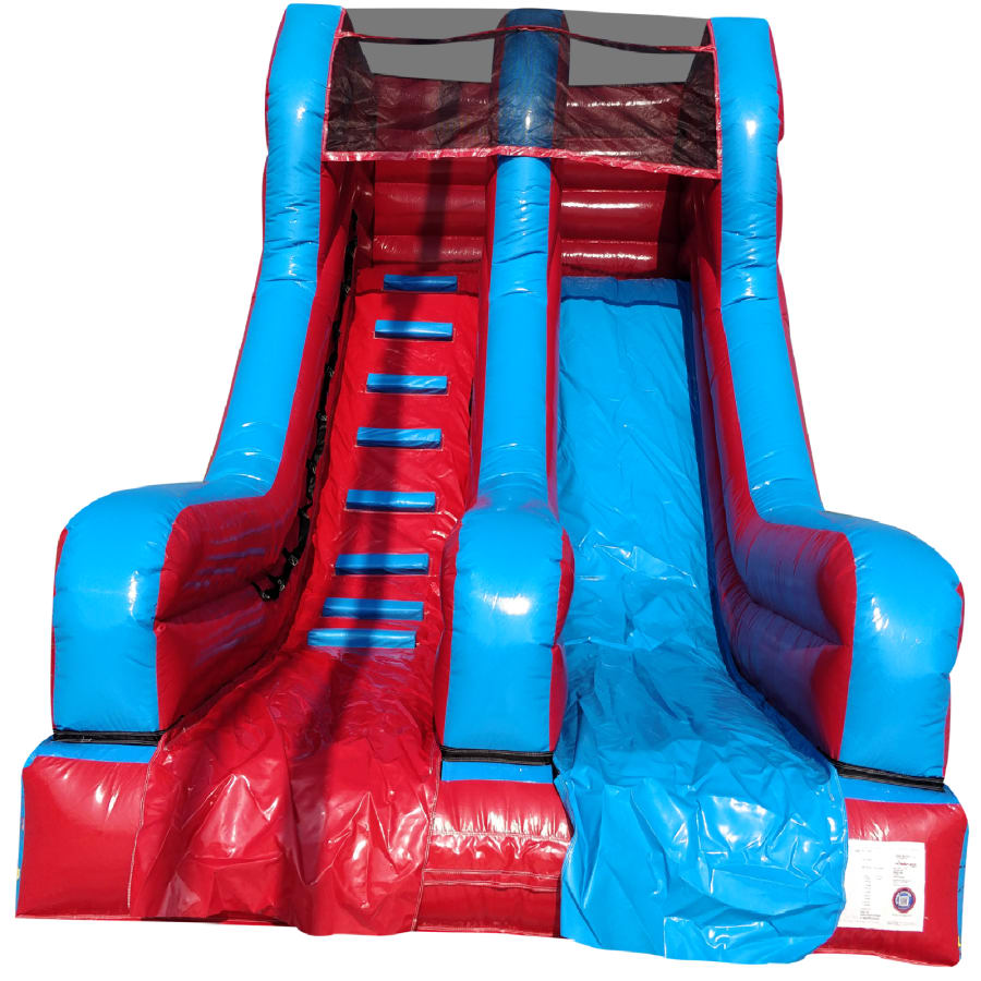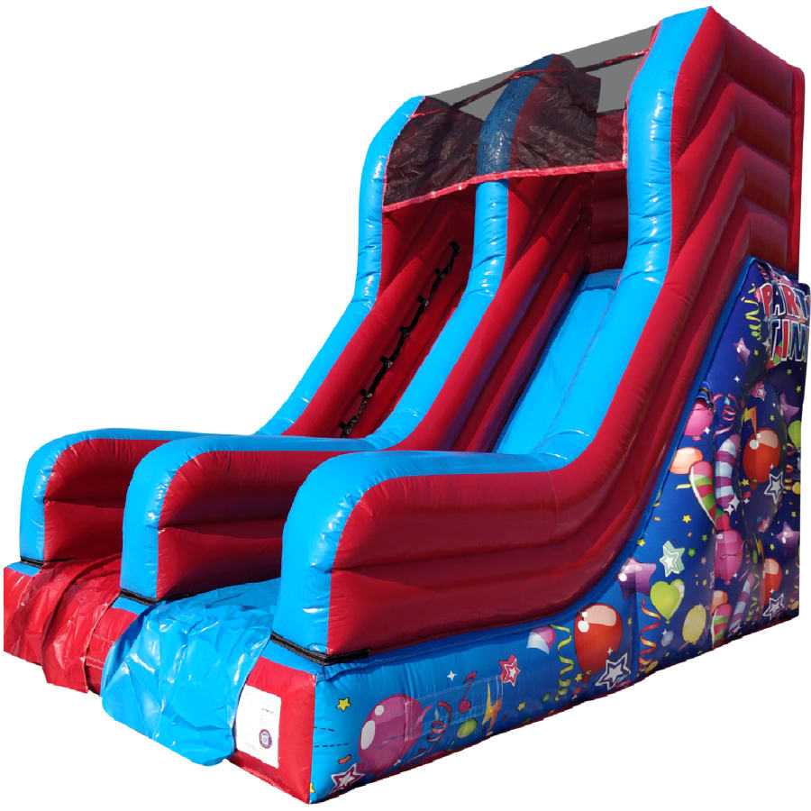 The 8ft platform slide is the perfect intermediate slide for any party, venue or occasion. The children using this slide just love the fact that it's big, bright and bold and gives them a real grown-up feel on their special day. The slide measures 14ft yet is perfect for both indoor and outdoor hire. The colour theme is very bright and absolutely fantastic, ensuring this inflatable slide is perfect to make their big day be everything they dreamed of.