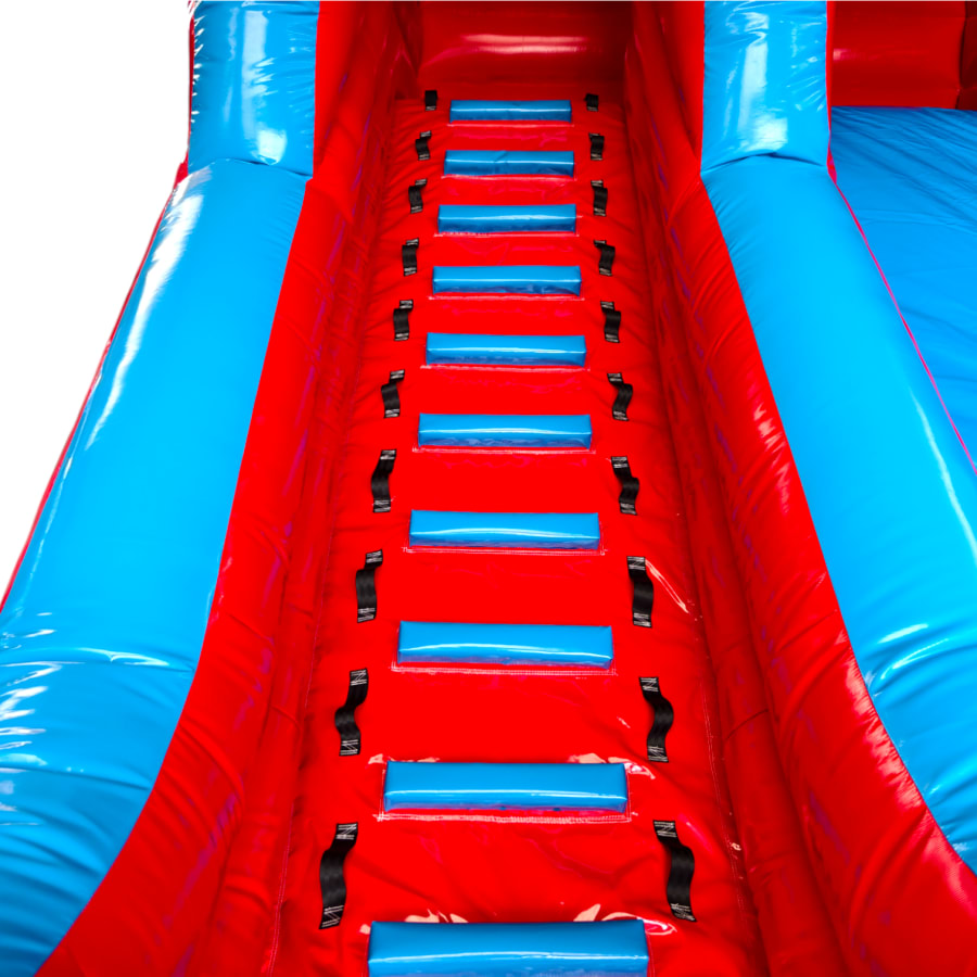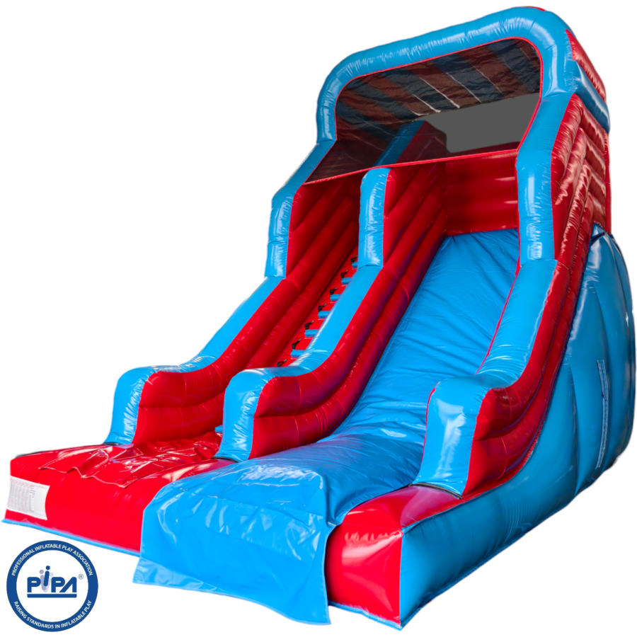 Its a perfect compromise between the back garden hire slides and the school gala style and is right on budget to achieve a good hire price. The slide comes complete with detachable foam block steps and slip sheet and can be manufactured in a range of colours to suit all clients.