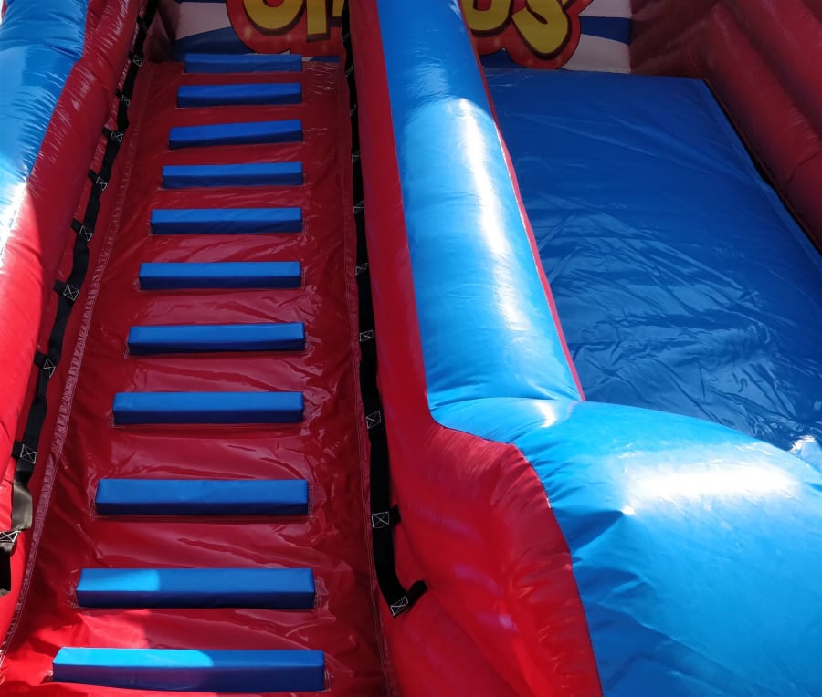 Its a perfect compromise between the back garden hire slides and the school gala style and is right on budget to achieve a good hire price.The slide comes complete with detachable foam block steps and slip sheet and can be manufactured in a range of colours to suit all clients.