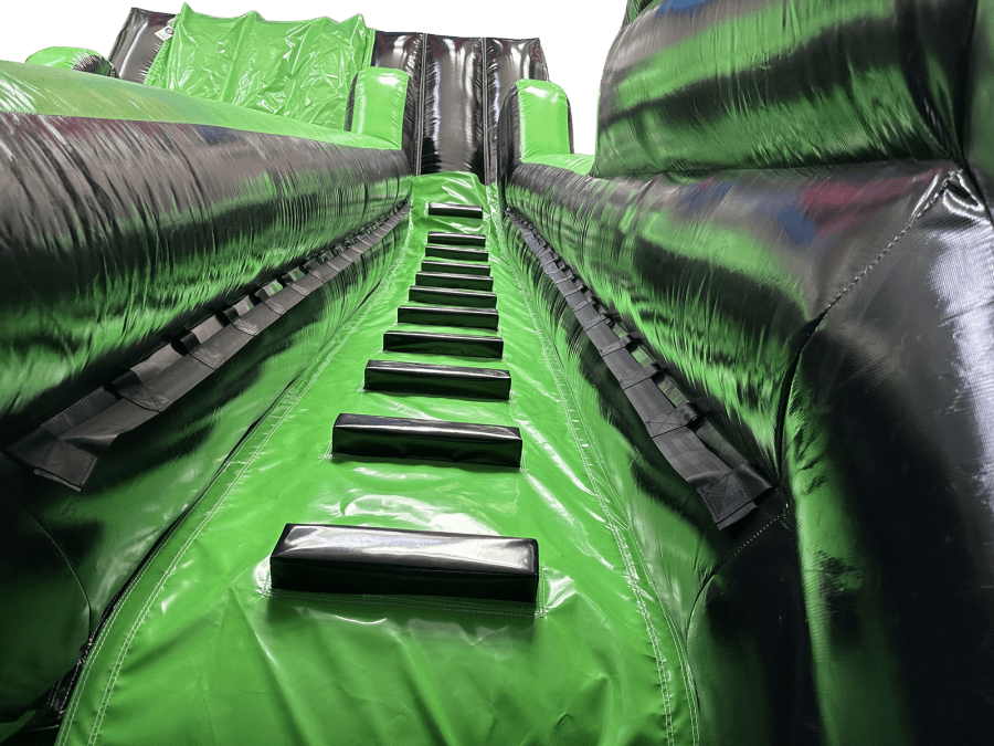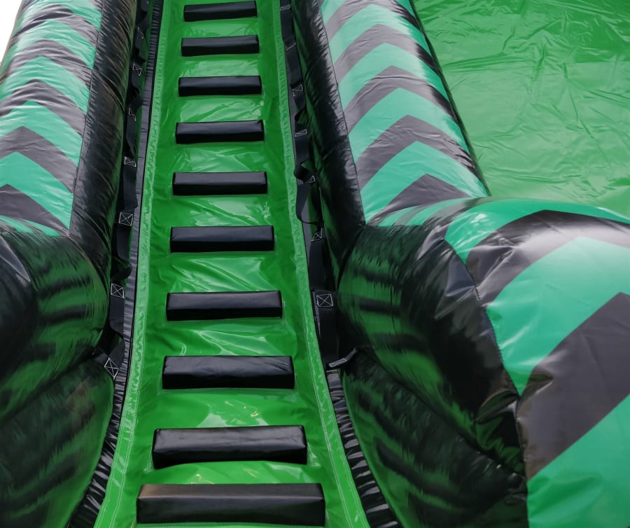 - The platform on this inflatable slide has been reduced in width by 60% to accommodate single-file use by children, reducing weight by approximately 45kg.