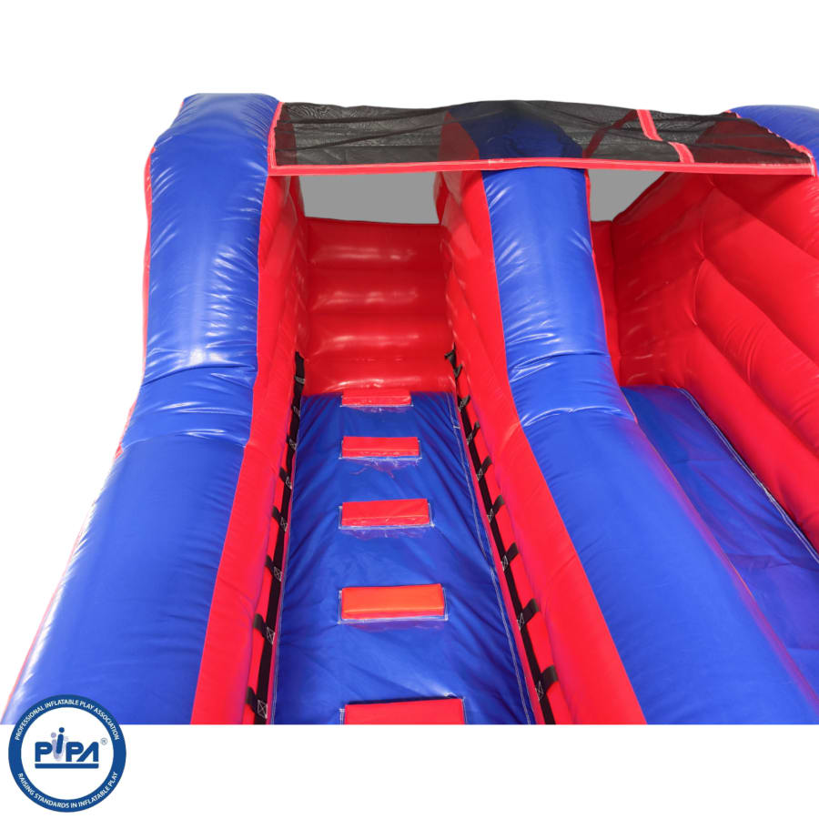 With an 8ft platform height and an overall footprint of 14ft in length, this inflatable slide provides all the thrills of a full-size unit in a space-friendly design. It’s the perfect mid-size option between our toddler-friendly 5ft slide and the larger 11ft models – giving users the “big slide” experience without the bulk.