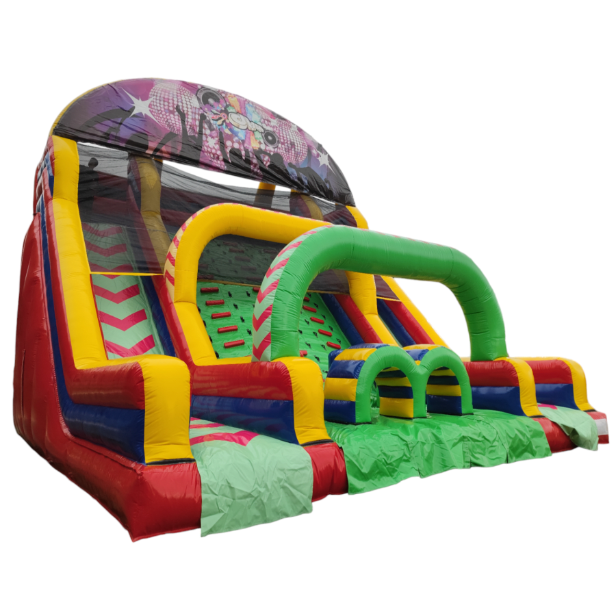 The Ultimate Dueling Slide is not just any slide; it's a colossal showpiece designed to captivate audiences at corporate events, school galas, family fun days, and more. This slide has earned its place as our number one best-selling attraction, and for good reason. With its awe-inspiring size and clever design, it's a true crowd-puller that promises thrills and excitement like no other.