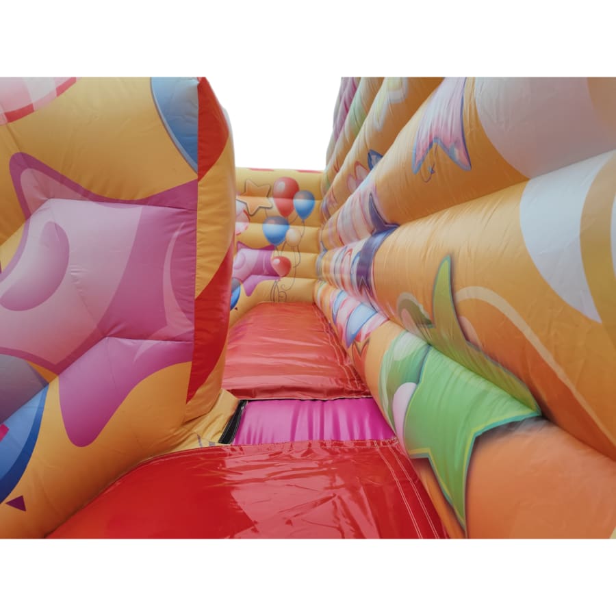 The slide's distinctive double steps design, reminiscent of the iconic Gladiator Travellator, adds a touch of nostalgia and an extra layer of thrill. At the top section, you'll discover dazzling carnival themed artwork.
