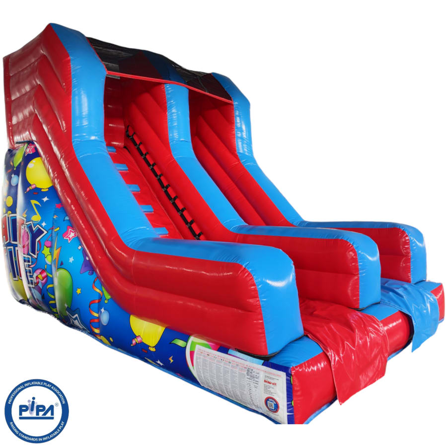 The 8ft platform slide is the perfect intermediate slide for any party, venue or occasion. The children using this slide just love the fact that it's big, bright and bold and gives them a real grown-up feel on their special day. The slide measures 14ft yet is perfect for both indoor and outdoor hire. The colour theme is very bright and absolutely fantastic, ensuring this inflatable slide is perfect to make their big day be everything they dreamed of.