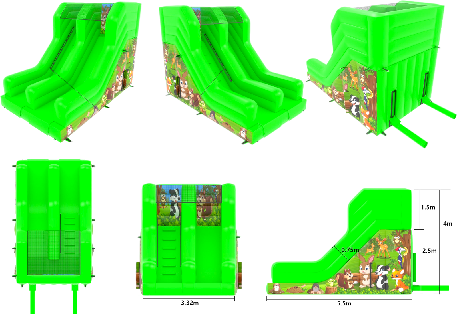 BBOL-199 - 18x12x14ft - 8ft platform Super slide - (Green Woodland Animals)