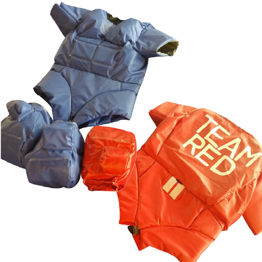 The red and blue team artworked suits are not only visually appealing but also create a sense of camaraderie and competition among participants. Whether you're hosting a team-building event, corporate gathering, gala, or fun day, these suits will inject an extra dose of excitement into the atmosphere. Spectators will be captivated by the spirited battles unfolding before their eyes, as the red and blue teams showcase their strength, agility, and determination.
